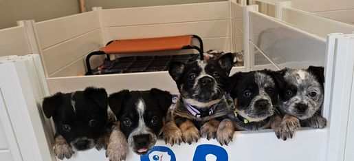 From the start of conception, mom is given a prenatal vitamin to help with the development of healthy puppies. I stay with my girls during the birthing process to make sure everything goes smoothly and help them in any way possible. Puppies are each given a colostrum supplement at birth and then allowed to nurse. Mom and pups are monitored 24/7 - whether I'm sleeping by her side, or checking the cameras that monitor her whelping box. On day 3, all puppies are carried to the vet for the removal of dew claws . And tails docked per customer request only. The puppies are weighed daily to ensure they are all gaining weight accordingly. They are offered wet puppy food/"mash" when ready, progressing to dry kibble when they are old enough. I feed Purina Pro Plan puppy chicken and rice formula as I have had great success with this kibble. At 7 weeks old, we visit the vet again for our 5-way vaccination, micro chipped and health check. All puppies go home with vet health check, vaccination records, micro chipped and registration application to American Stock dog. Puppies are wormed at 4, 6 and 8 weeks of age and supplemented with probiotics at time of worming. By 8 weeks old they are completely weaned and ready for their forever homes. While in our care, the puppies will be introduced to our "pack", get to play outdoors and are handled every day.